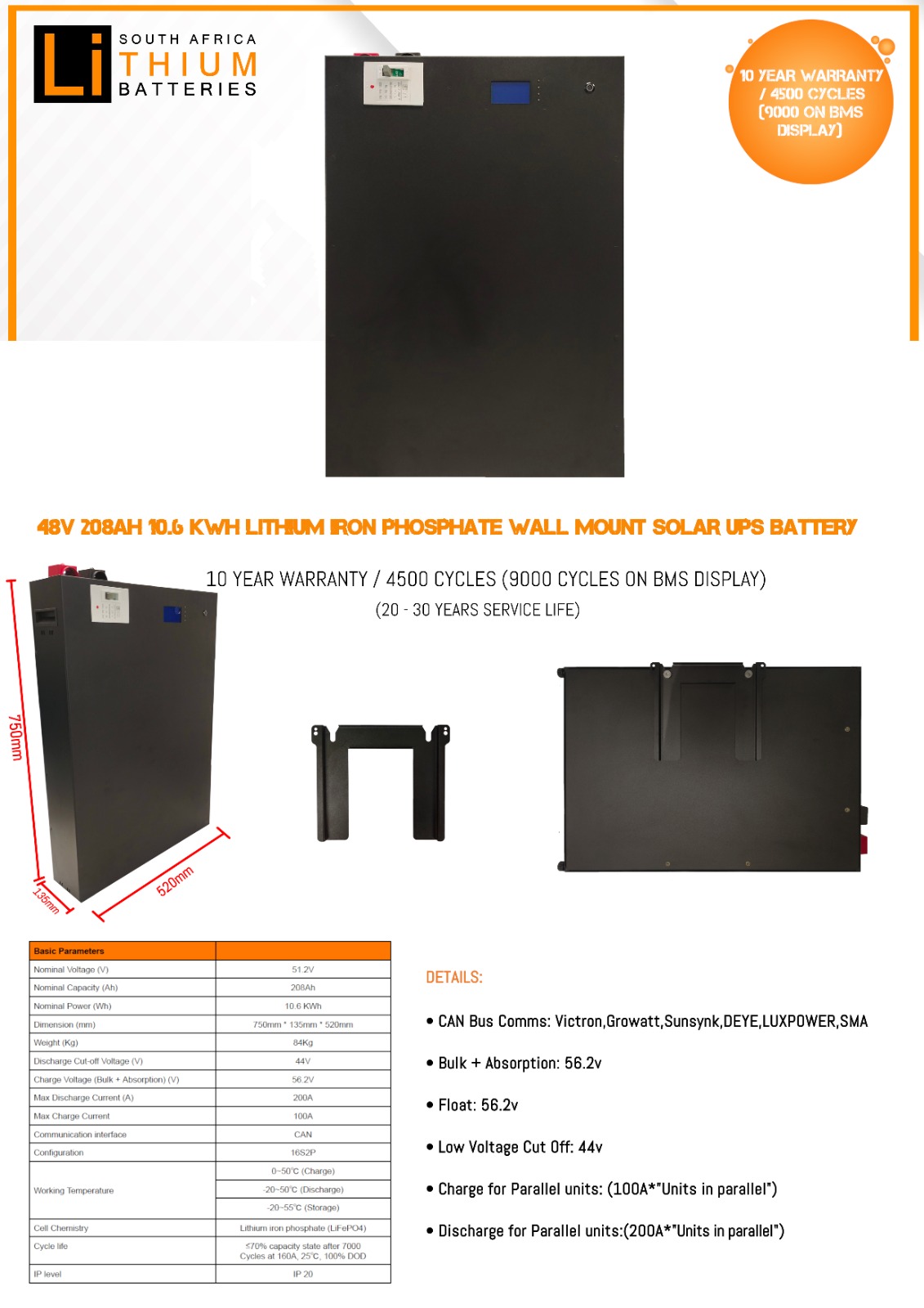 10 Year or 4500 cycles (9000 Cycles on BMS display) Warranty